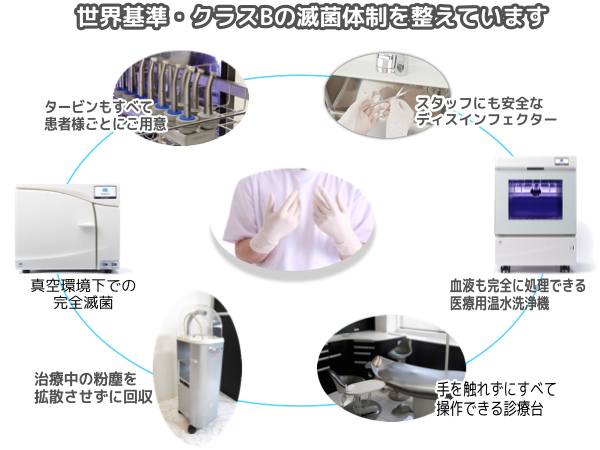 世界最高水準の滅菌環境と運用システムで全ての治療にあたります。
